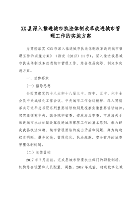 县深入推进城市执法体制改革改进城市管理工作的实施方案.docx