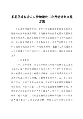 某县促进脱贫人口持续增收三年行动计划实施方案.docx