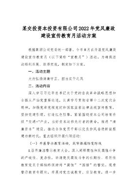 某交投资本投资有限公司2022年党风廉政建设宣传教育月活动方案.docx