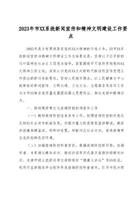 2023年市XX系统新闻宣传和精神文明建设工作要点.docx