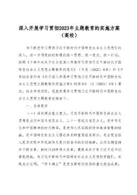 深入开展学习贯彻2023年主题教育的实施方案(高校).docx