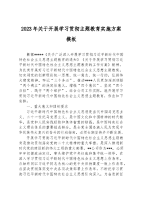 2023年关于开展学习贯彻主题教育实施方案模板.docx