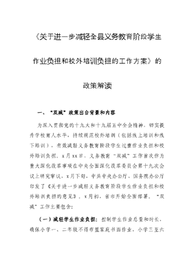 《关于进一步减轻全县义务教育阶段学生作业负担和校外培训负担的工作方案》的政策解读.docx
