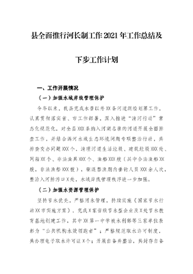 县全面推行河长制工作2021年工作总结及下步工作计划.docx