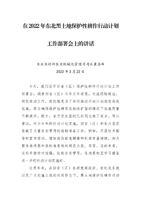 在2022年东北黑土地保护性耕作行动计划工作部署会上的讲话.docx