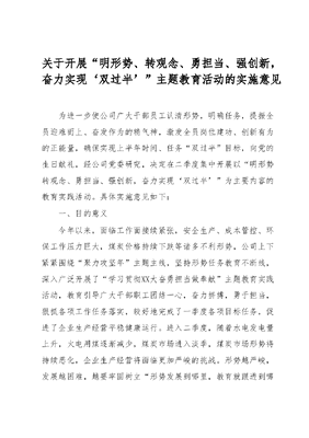 关于开展“明形势、转观念、勇担当、强创新奋力实现‘双过半’”主题教育活动的实施意见.docx