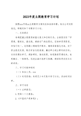 学习贯彻2023年主题教育理论学习实施方案.docx
