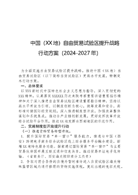 中国(XX地)自由贸易试验区提升战略行动方案(2024-2027年).docx