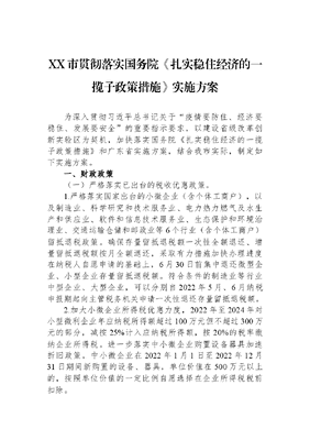 XX市贯彻落实国务院《扎实稳住经济的一揽子政策措施》实施方案.docx