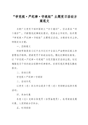 学党规严纪律守规矩主题党日活动方案范文.docx
