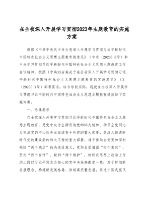 在全校深入开展学习贯彻2023年主题教育的实施方案.docx