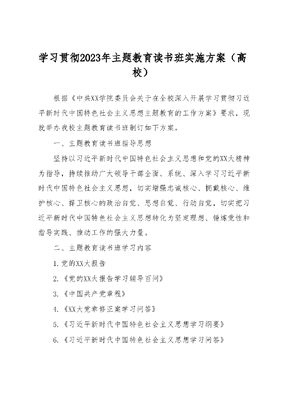 学习贯彻2023年主题教育读书班实施方案(高校).docx