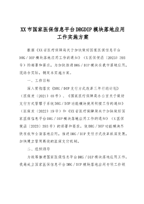 XX市国家医保信息平台DRGDIP模块落地应用工作实施方案.docx