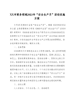 XX市商务领域2023年“安全生产月”活动实施方案.docx