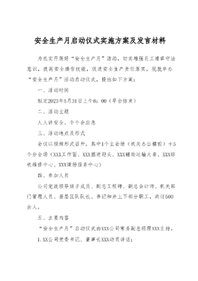 2023年6月份安全生产月启动仪式实施方案及发言材料.docx
