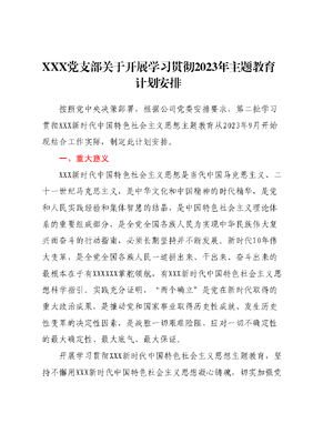 XXX党支部关于开展学习贯彻2023年主题教育计划安排.docx