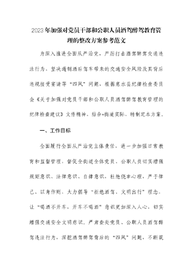 2023年加强对党员干部和公职人员酒驾醉驾教育管理的整改方案.docx