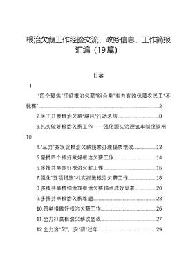 (19篇)根治欠薪工作经验交流、政务信息、工作简报汇编.docx