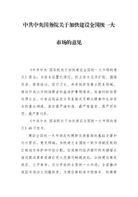 2022年中共中央国务院关于加快建设全国统一大市场的意见.docx