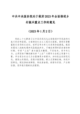 中共中央国务院关于做好2023年全面推进乡村振兴重点工作的意见(中央一号文件).docx