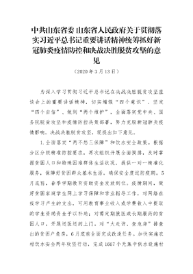 关于贯彻落实习近平总书记重要讲话精神统筹抓好新冠肺炎疫情防控和决战决胜脱贫攻坚的意见.docx