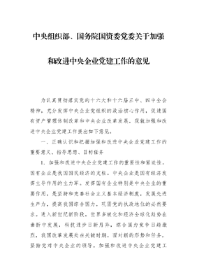 中央组织部、国务院国资委党委关于加强和改进中央企业党建工作的意见2004.docx