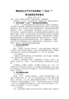 国务院办公厅关于加快推进“三证合一”登记制度改革的意见.doc