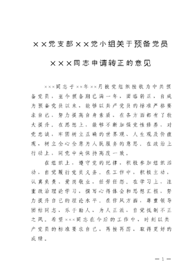 ××党支部××党小组关于预备党员×××同志申请转正的意见.doc