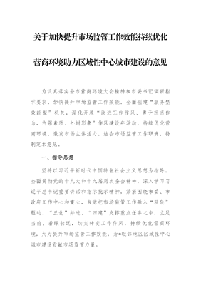 关于加快提升市场监管工作效能持续优化营商环境助力区域性中心城市建设的意见.docx