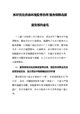 抓好优化营商环境监督治理 服务保障高质量发展的意见.docx