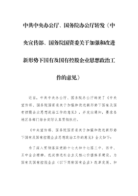 中央宣传部、国务院国资委关于加强和改进新形势下国有及国有控股企业思想政治工作的意见2011.docx
