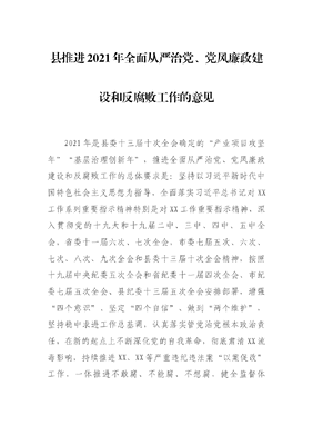 县推进2021年全面从严治党、党风廉政建设和反腐败工作的意见.docx