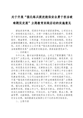 关于开展“强化练兵提技能保安全勇于担当破难题促发展”主题教育实践活动的实施意见.docx
