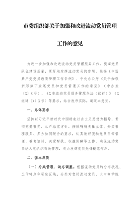 市委组织部关于加强和改进流动党员管理工作的意见.docx