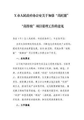 X市人民政府办公室关于加强“高耗能”“高排放”项目管理工作的意见.docx