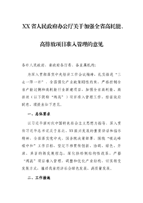 XX省人民政府办公厅关于加强全省高耗能、高排放项目准入管理的意见.docx