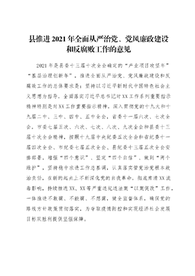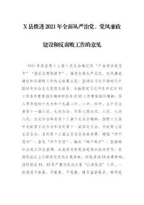 X县推进2021年全面从严治党、党风廉政建设和反腐败工作的意见.docx