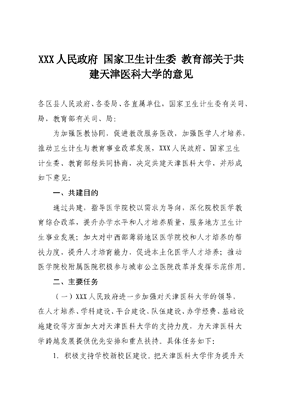 天津市人民政府 国家卫生计生委 教育部关于共建天津医科大学的意见.doc