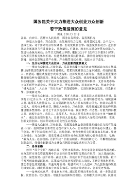 国务院关于大力推进大众创业万众创新若干政策措施的意见.doc