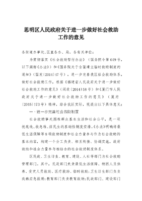 思明区人民政府关于进一步做好社会救助工作的意见.doc