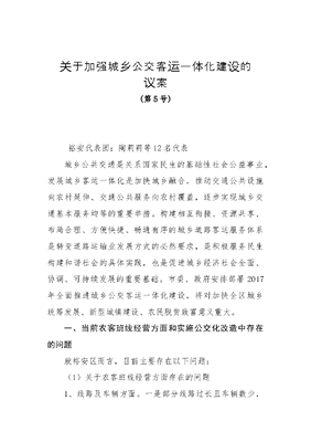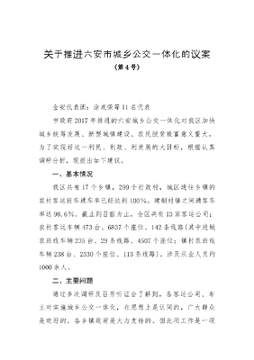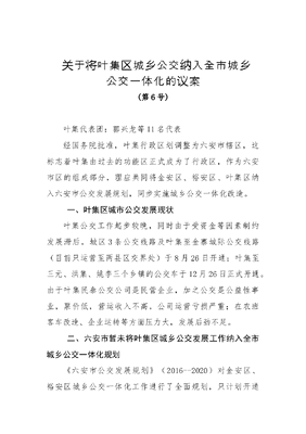 关于将叶集区城乡公交纳入全市城乡公交一体化的议案.docx