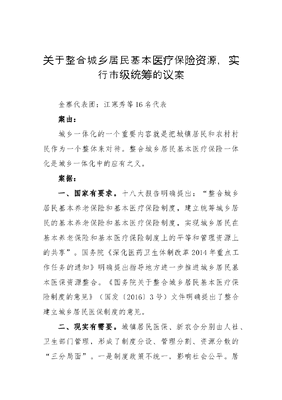 关于整合城乡居民基本医疗保险资源,实行市级统筹的议案.docx