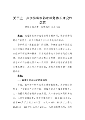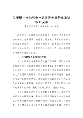 关于进一步加强全市居家养老服务体系建设的议案.docx