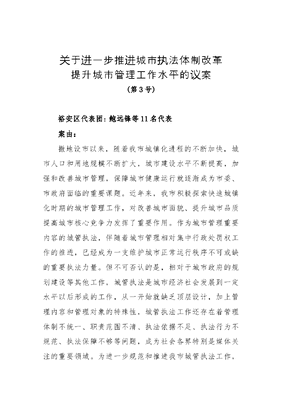 关于进一步推进城市执法体制改革提升城市管理工作水平的议案.docx