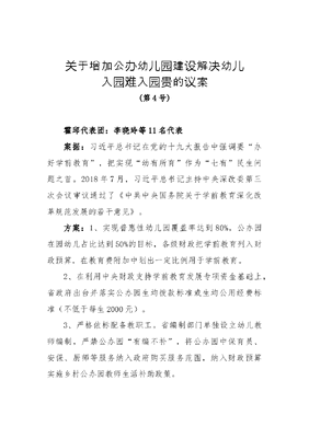关于增加公办幼儿园建设解决幼儿入园难入园贵的议案.docx