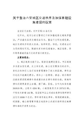 关于整治六安城区交通秩序及加强基础设施建设的议案.docx