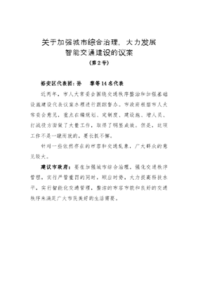 关于加强城市综合治理,大力发展智能交通建设的议案.docx