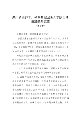 关于进一步加强基层卫生人才队伍建设的议案.docx