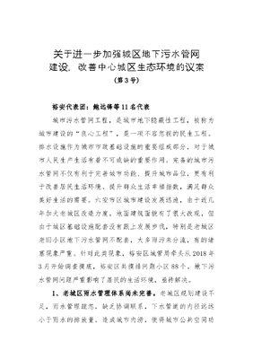 关于进一步加强城区地下污水管网建设,改善中心城区生态环境的议案.docx