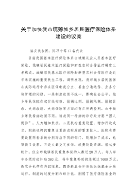 关于加快我市统筹城乡居民医疗保险体系建设的议案.docx